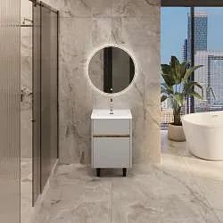 10 400 Р Тумба под раковину Aris mini 60П (590х400х447) 1я белая аляска/белый глянец