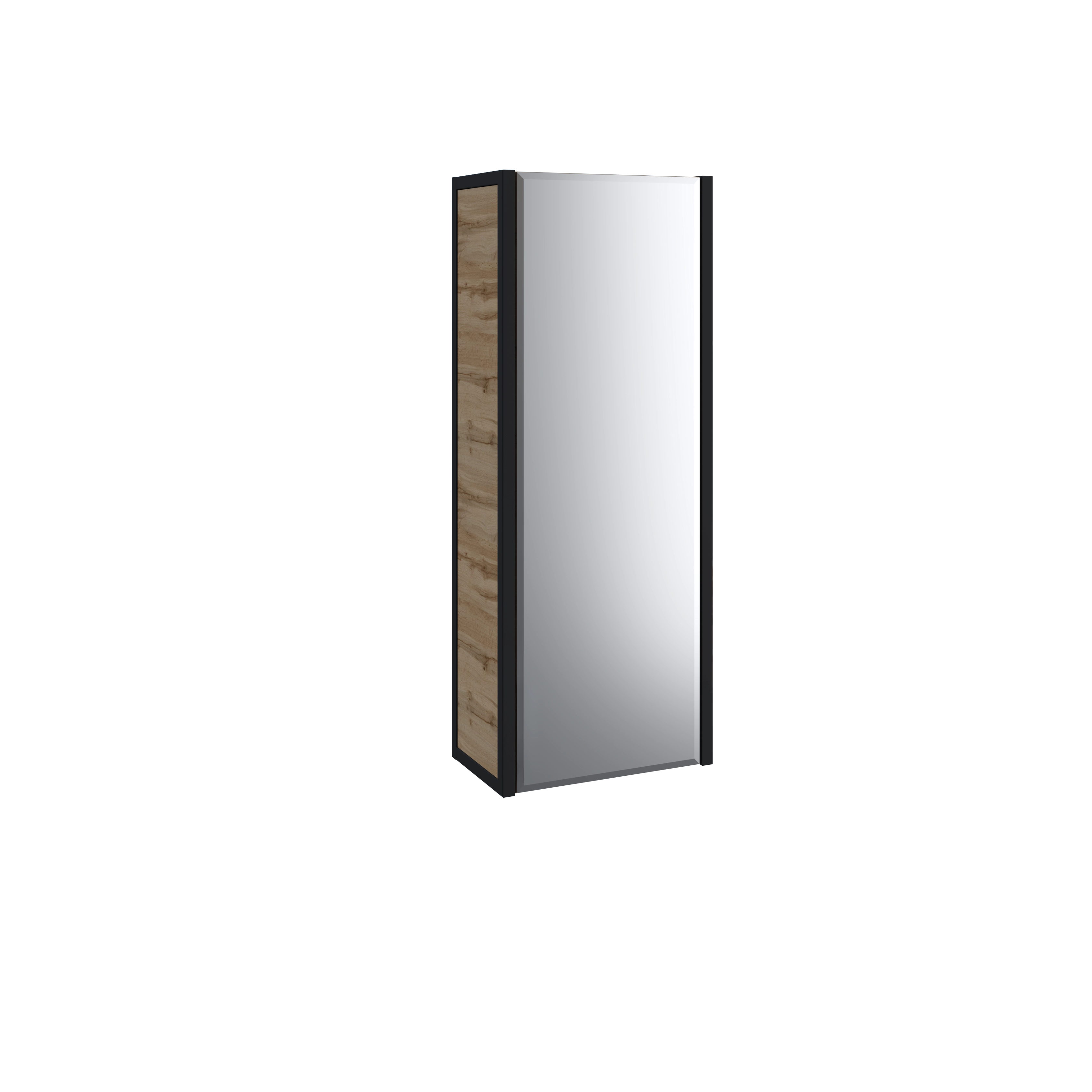Подвесной зеркальный пенал в популярном и всегда актуальном стиле лофт, в котором превосходно сочетаются дерево и стекло. Стеклянная дверца не только визуально расширяет пространство, но и выполняет дополнительную практическую функцию. Внутри пенала находятся три полки для размещения предметов, косметики и аксессуаров разных габаритов. За его долговечность и устойчивость к воздействию влаги отвечает выполнение из влагостойкой ЛДСП в стильном и одновременно универсальном цвете Дуб вотан. Благодаря петлям с доводчиками дверца закрывается плавно и бесшумно.