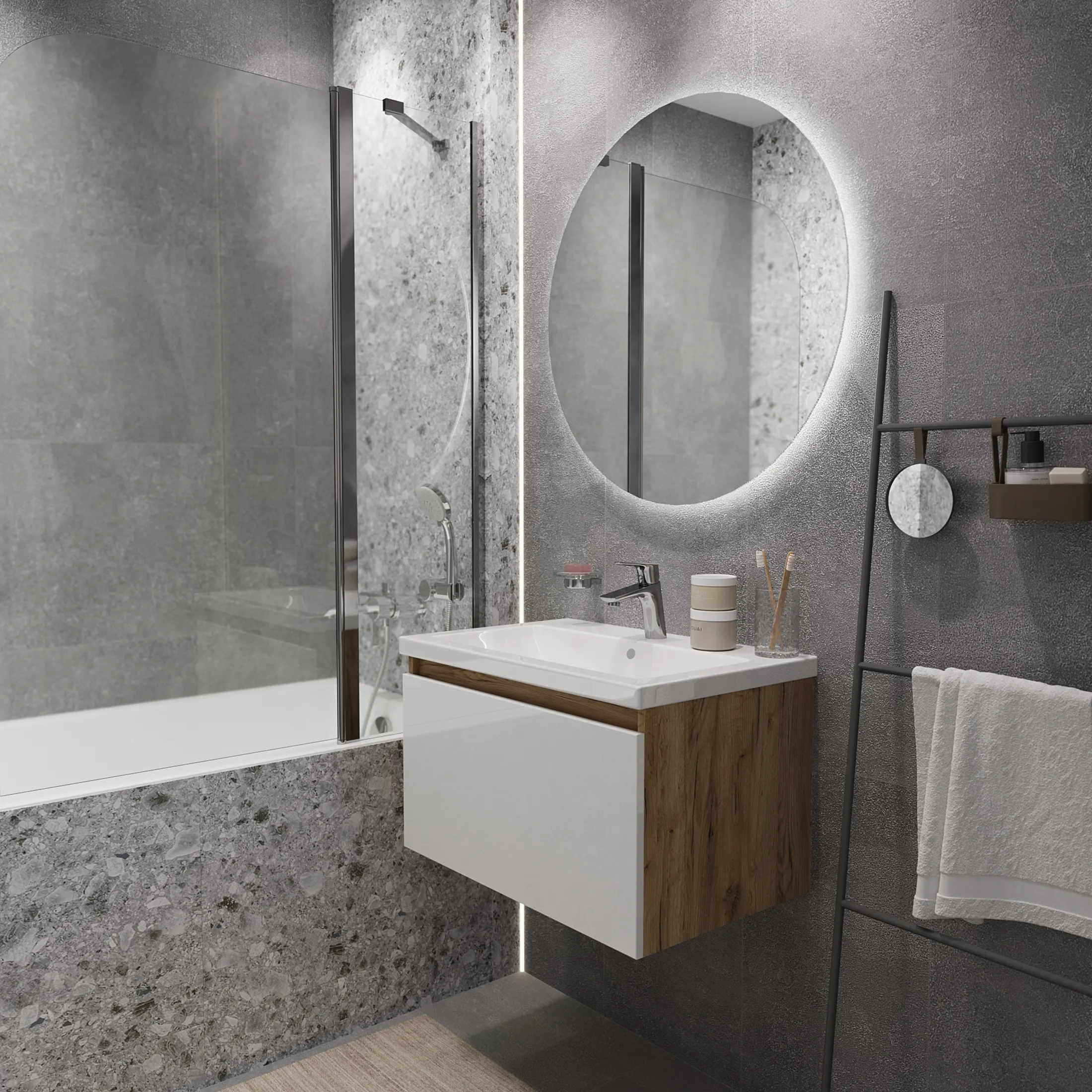 Тумба Aris mini – современное и функциональное решение для организации хранения и создания уютного пространства в ванной комнате. Сочетание древесного корпуса и белого глянцевого фасада тумбы добавит легкости в интерьер.Характеристики: