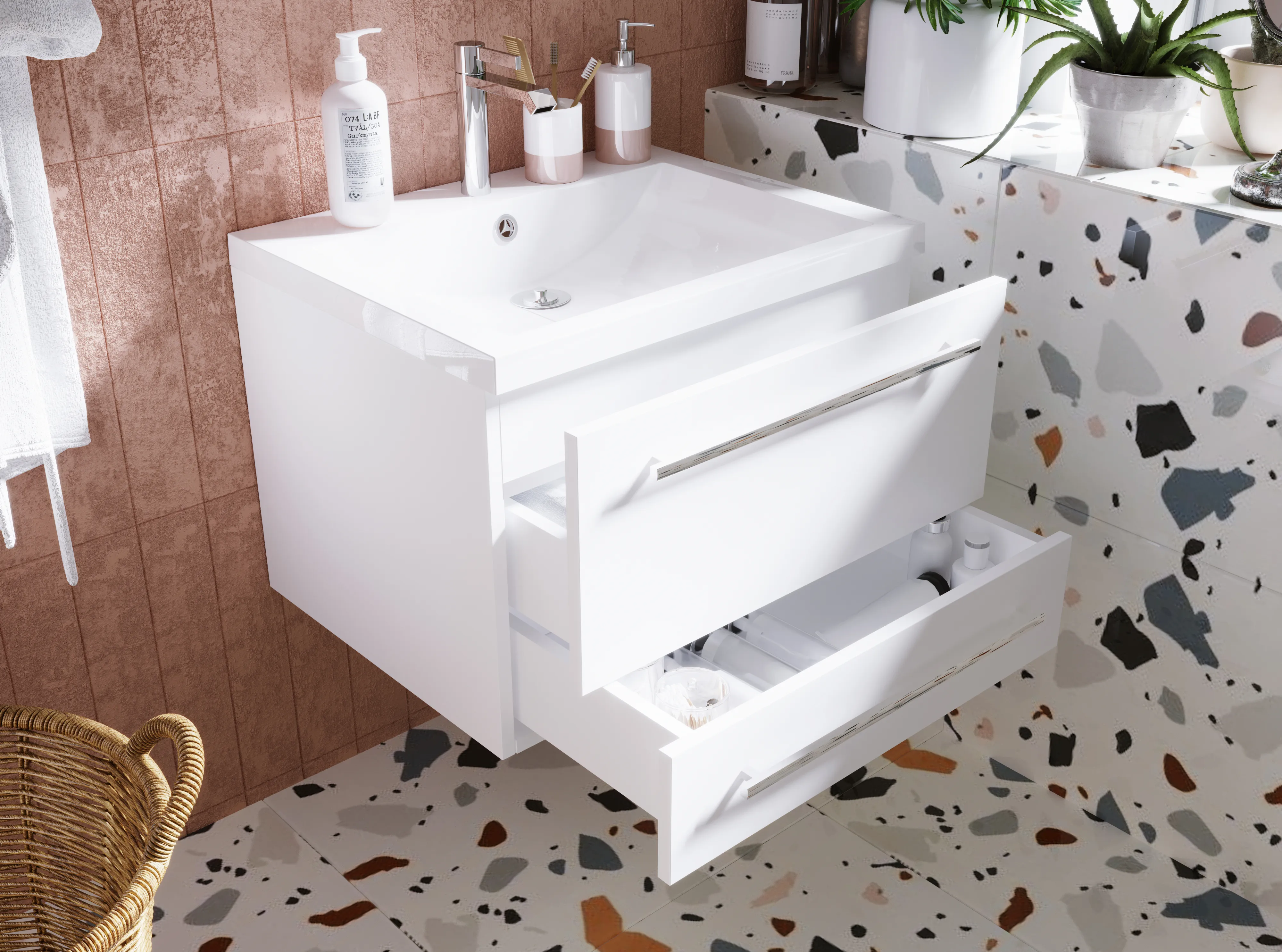 20 957 Р Тумба под раковину КУБ/Cube 75Н 2в.я 1д белый глянец