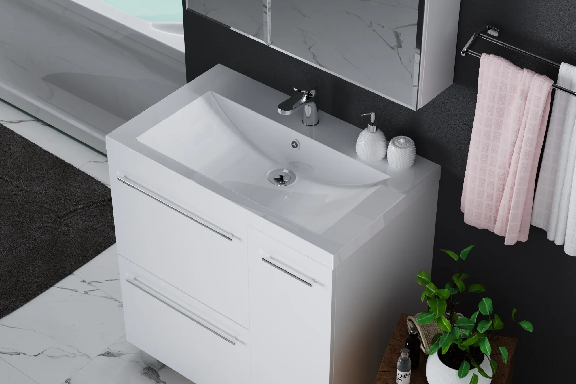 20 957 Р Тумба под раковину КУБ/Cube 75Н 2в.я 1д белый глянец