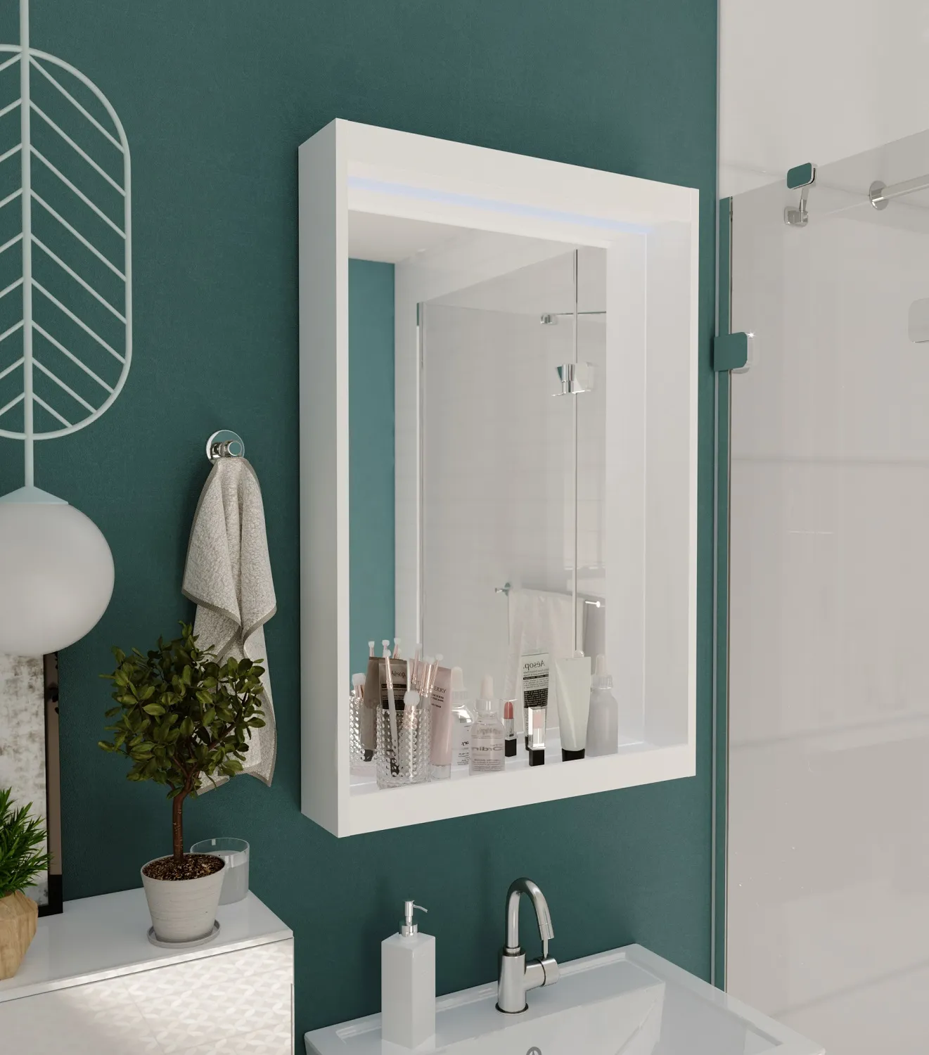 Стильное зеркало с функциональной рамой, в котором воплощены все самые актуальные идеи для декора интерьеров ванных комнат. Отсутствие лишних деталей, четкие линии и лаконичная прямоугольная форма делают его универсальным аксессуаром для любого пространства в современной или эклектичной стилистике. Также модель имеет преимущества в виде дополнительной полки, подсветки и расположенных на дне выключателя и розетки. Благодаря зеркальному полотну из серебряной амальгамы французского или бельгийского производства срок службы зеркала значительно увеличивается.